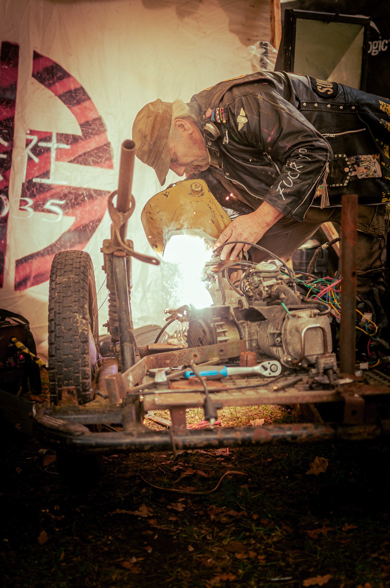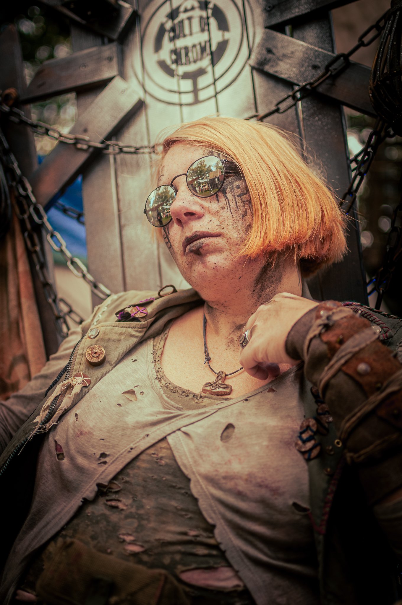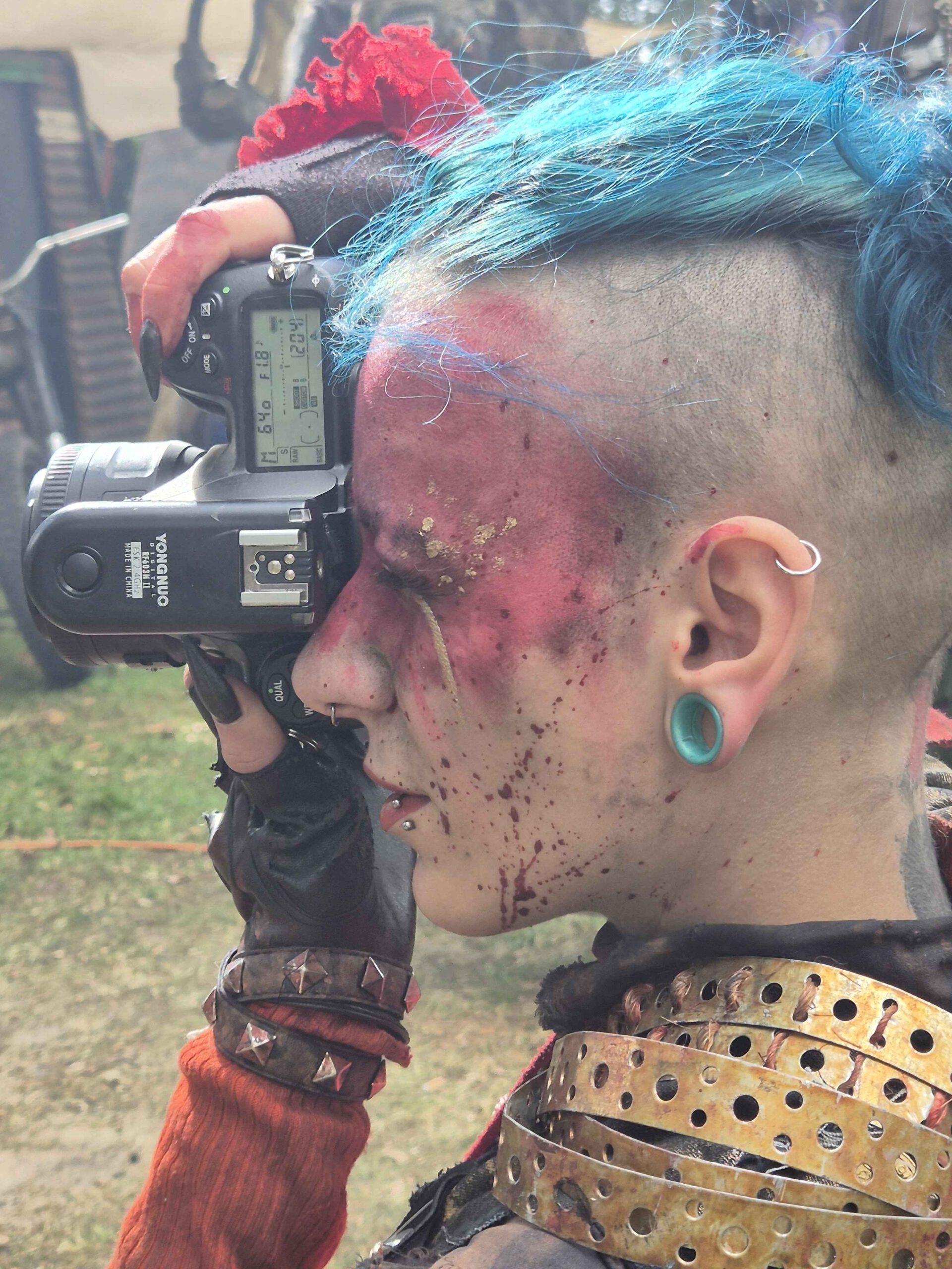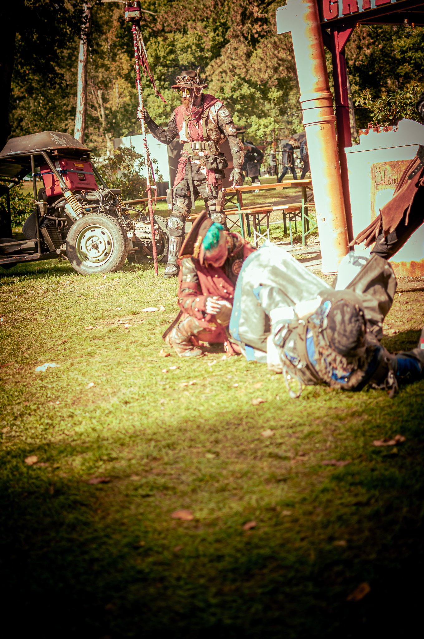 Als sich Samstagabend der Regen und die wütenden Windböen etwas beruhigt hatten, hieß es natürlich: Party. Mit Feuershow, lauter Musik, Nebel, wildem Getanze und allem was das Endzeit-Herz begehrt. So war es ein Wunder, dass die Energie am Sonntag nach wie vor gegeben war, die endlich auftauchende Sonne hat aber mit Sicherheit ihren Teil dazu beigetragen. Da gemeinsam mit der Temperatur auch die Besucherzahl stieg, lohnte sich hier auch der zusätzliche Showact mit unseren neuen Freunden von Bellas Bar: Der Tumult! Die Showkämpfe entlockten den Zuschauern zahlreiche Ohs und Ahs, eventuell Besorgte können wir beruhigen: War natürlich alles nur gespielt, und bis auf einen Kratzer im Motorrad ist niemandem etwas passiert.